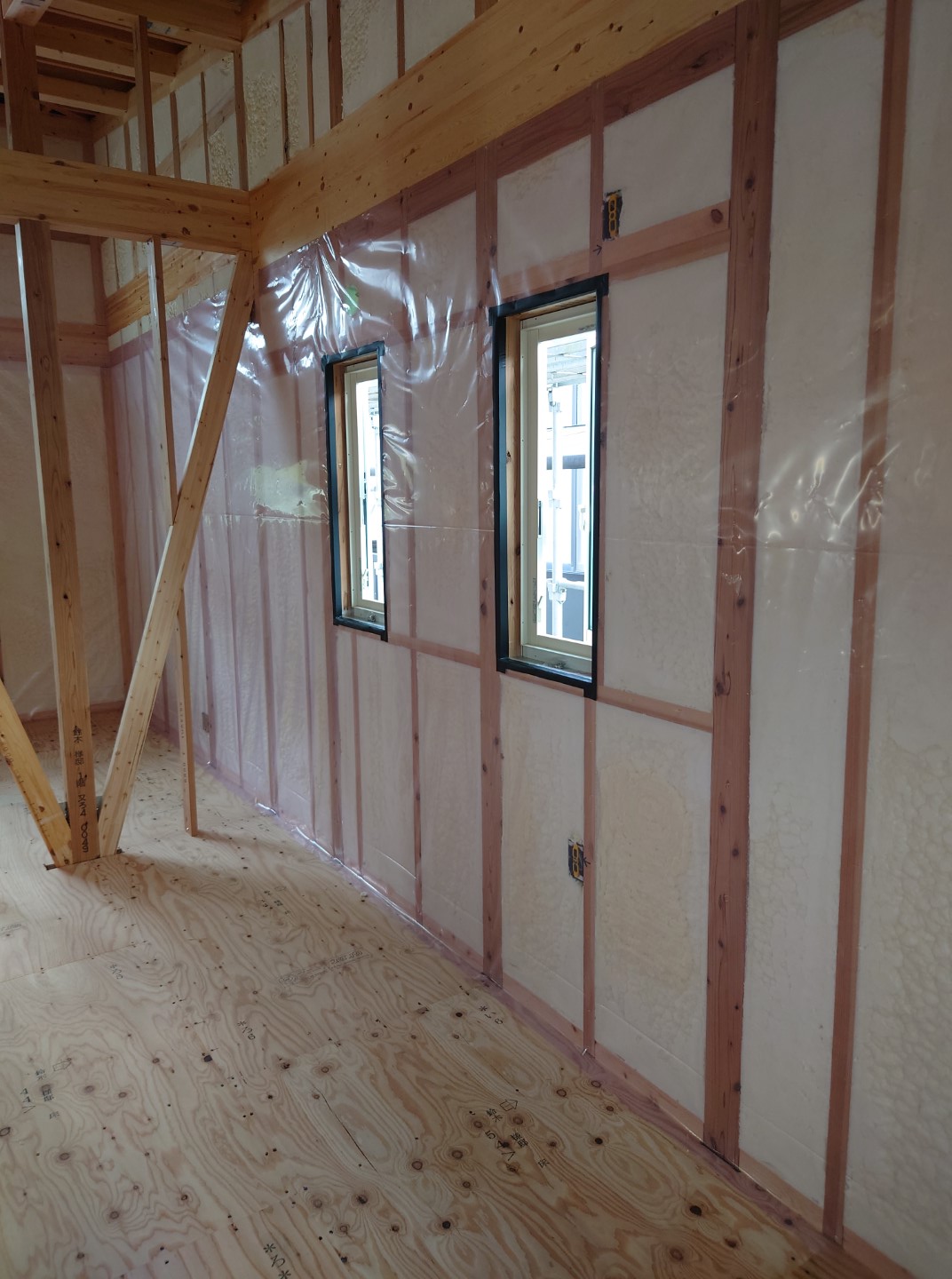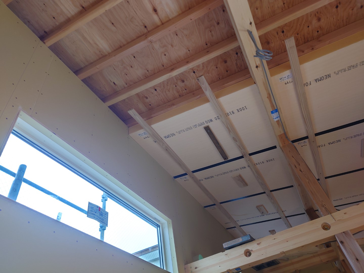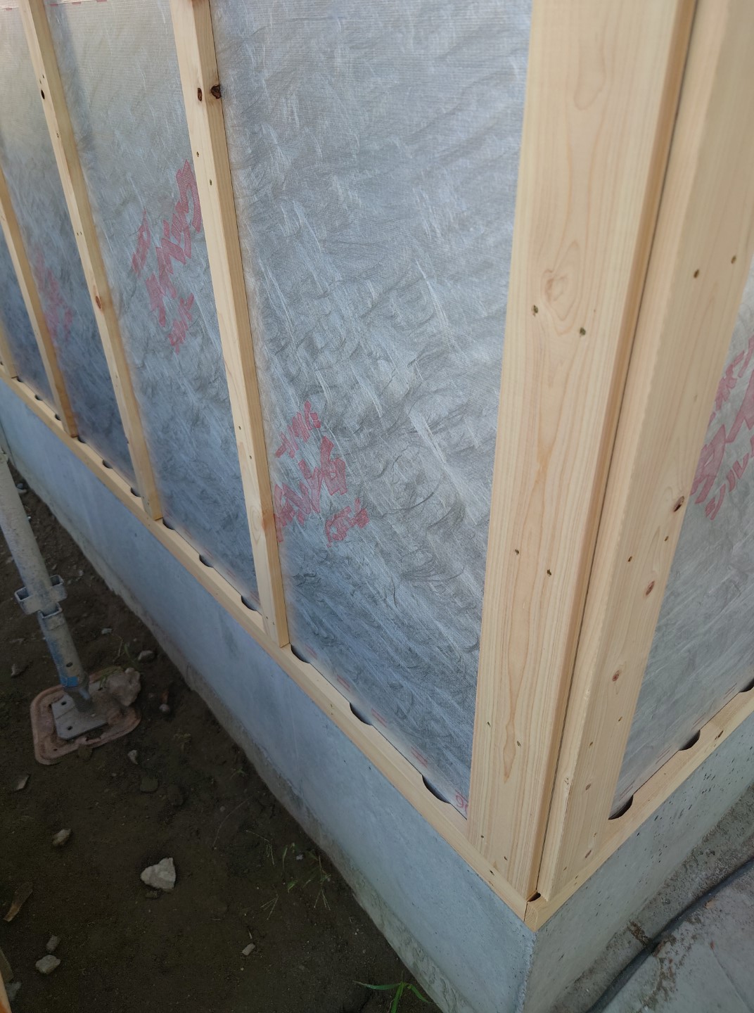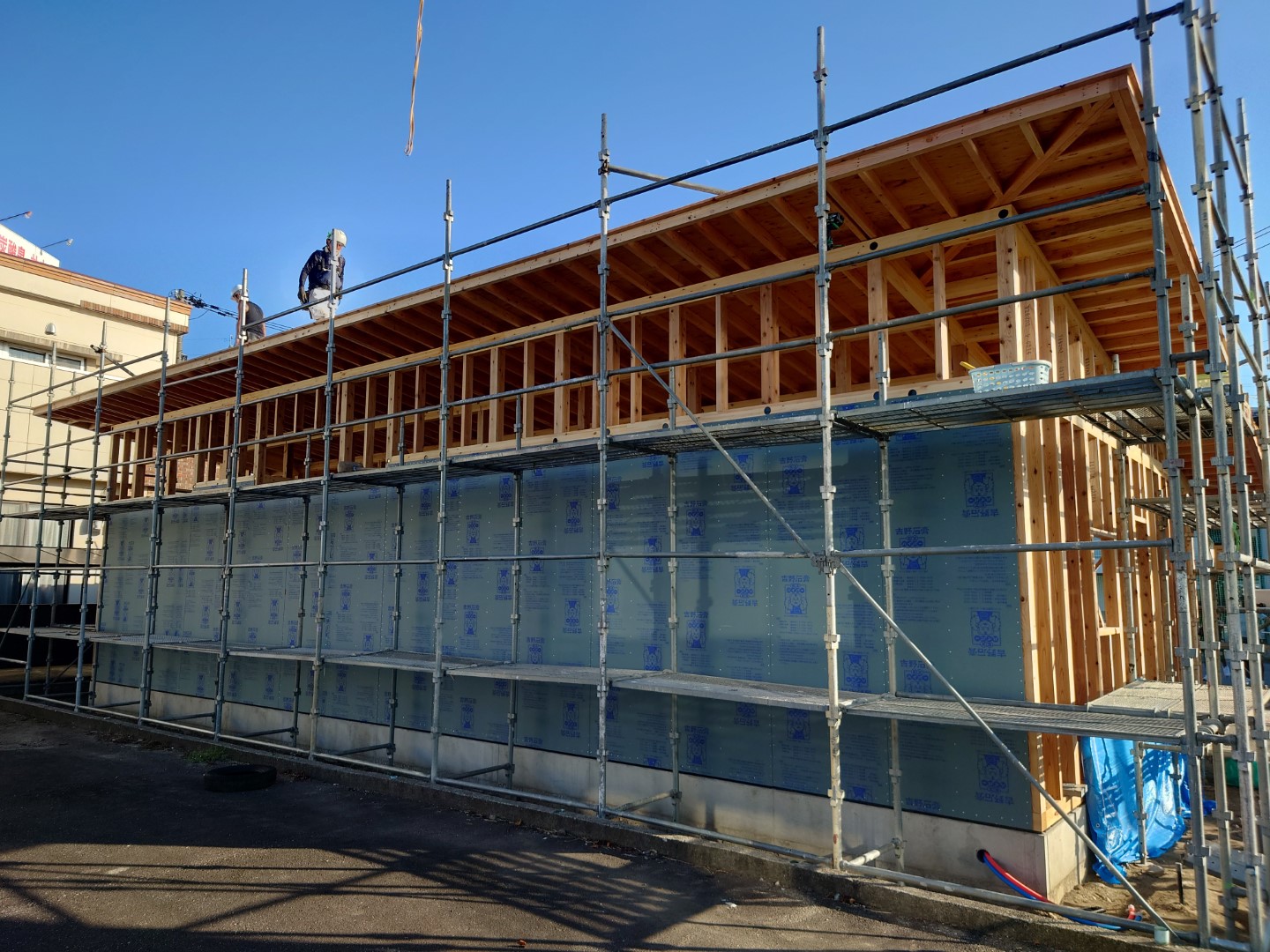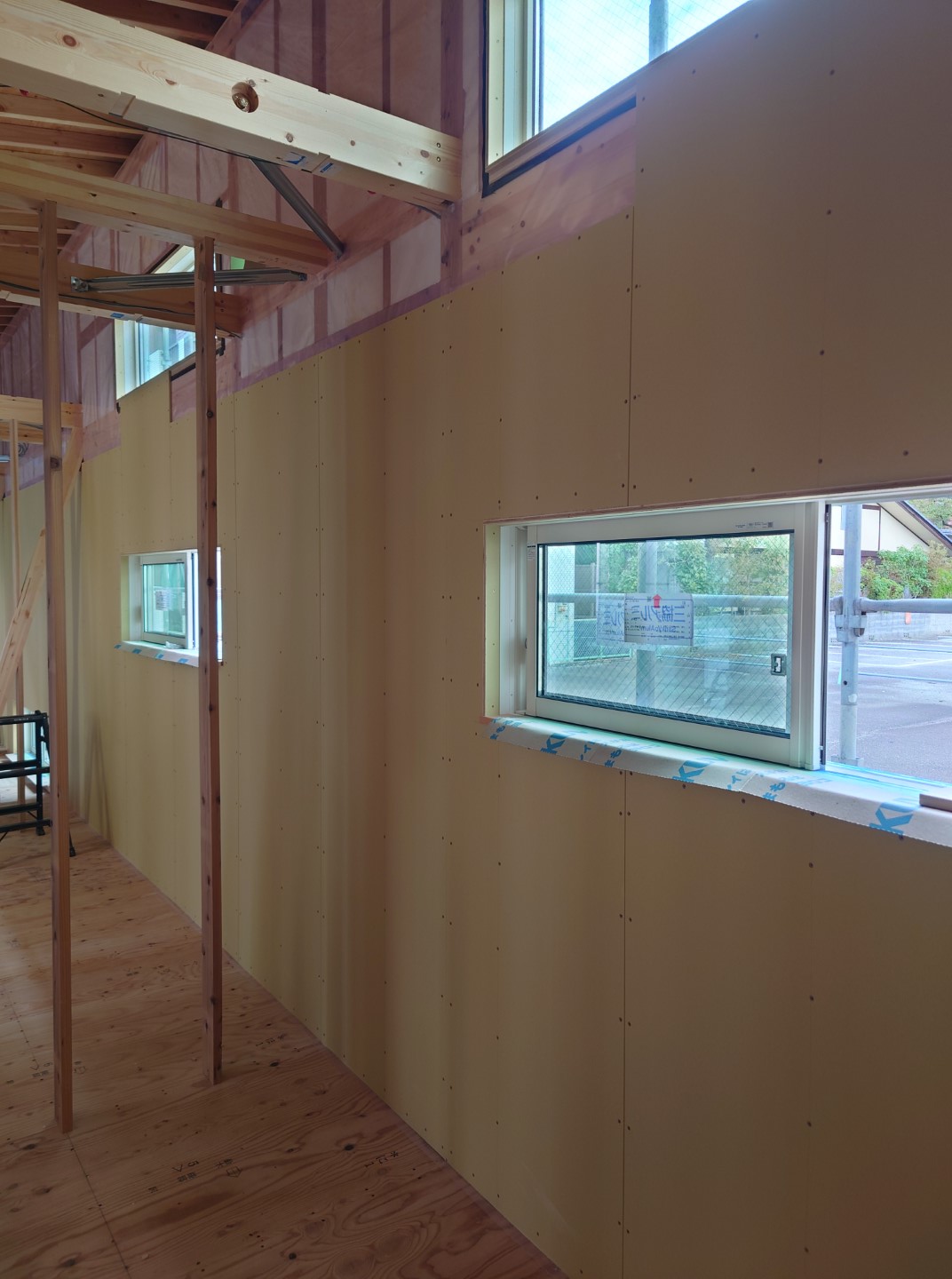 建て方後の内部は準防火地域の為外壁面から仕上げます