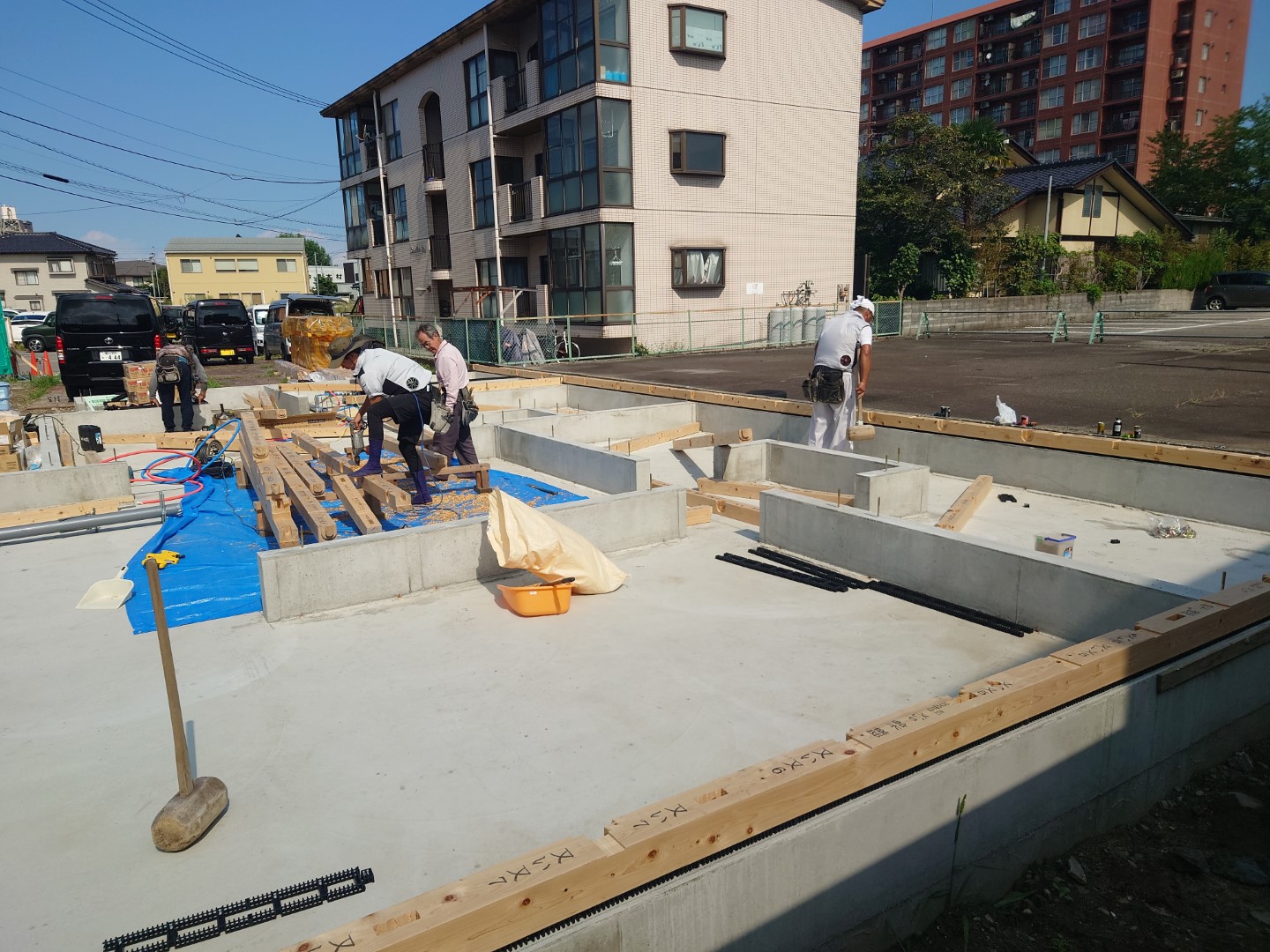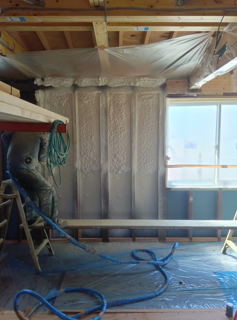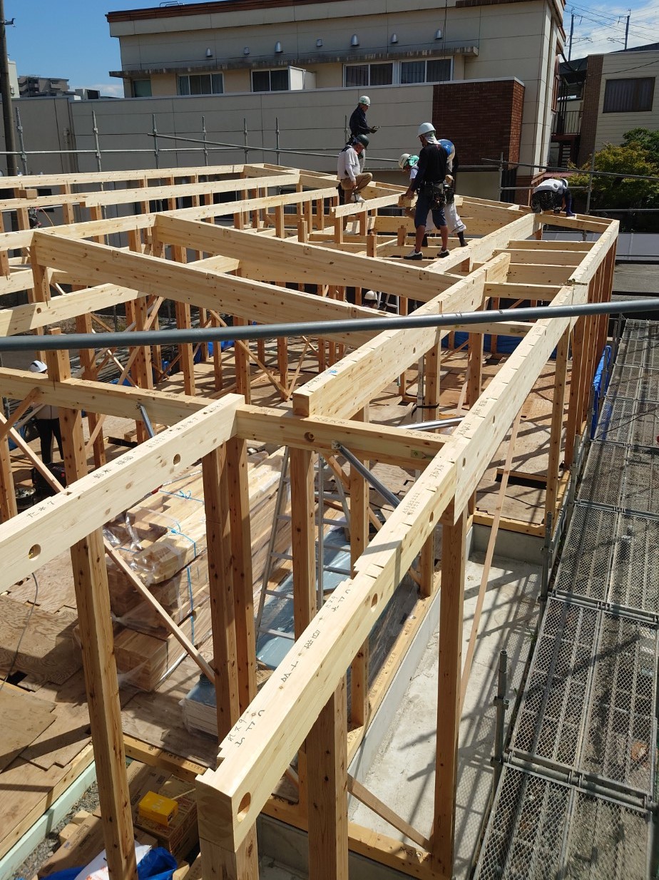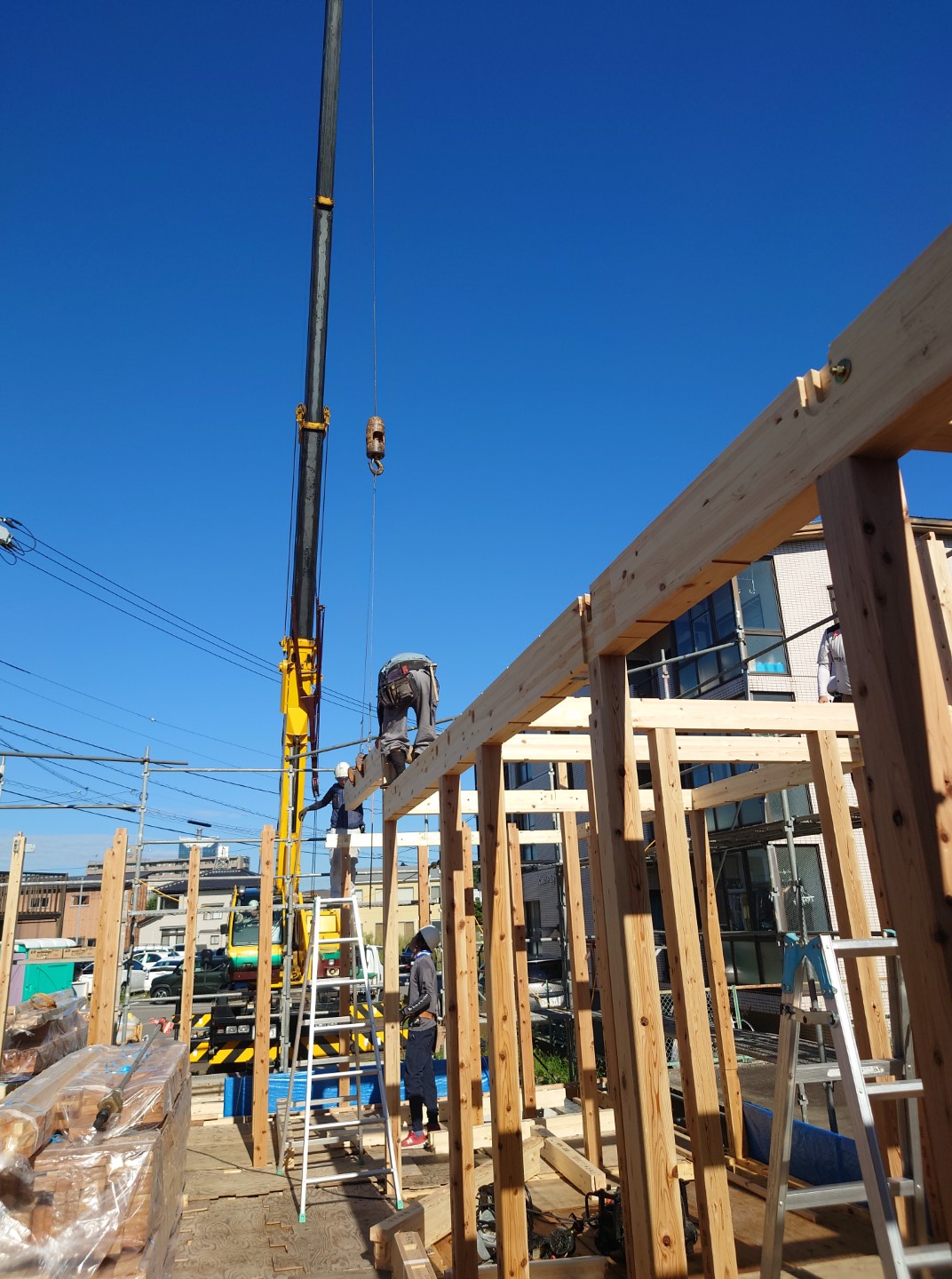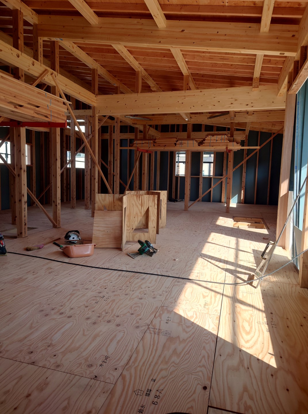 建て方後の内部は準防火地域の為外壁面から仕上げます