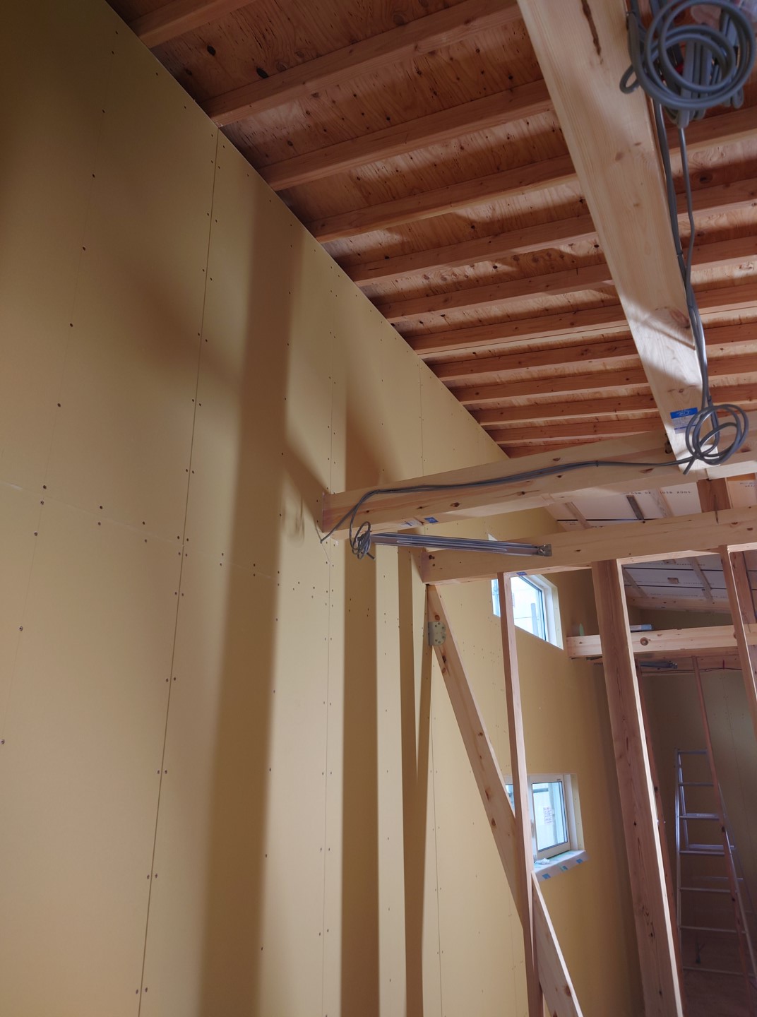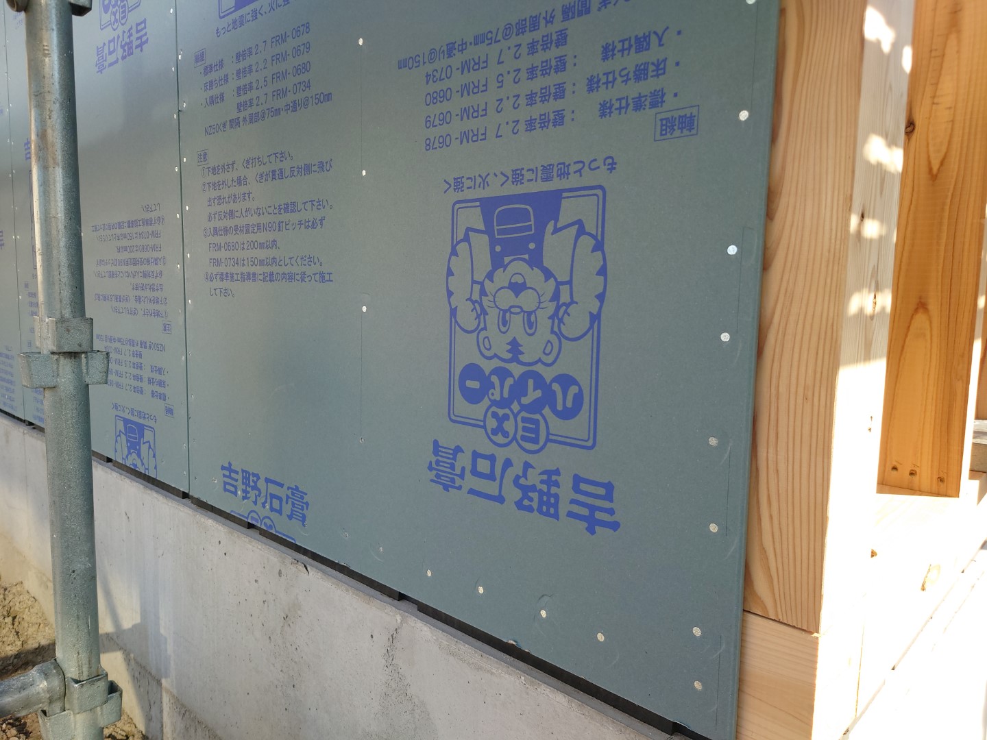 建て方に合わせて防火と耐震を兼ねた石膏ボードを外部に打ちます