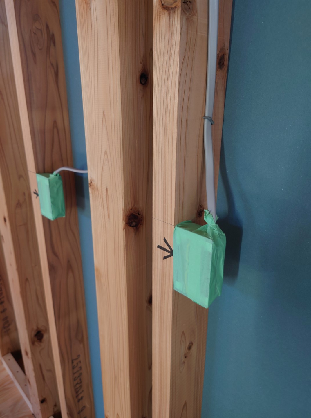外周部にあるコンセントやスイッチは早めに決定して取り付けます