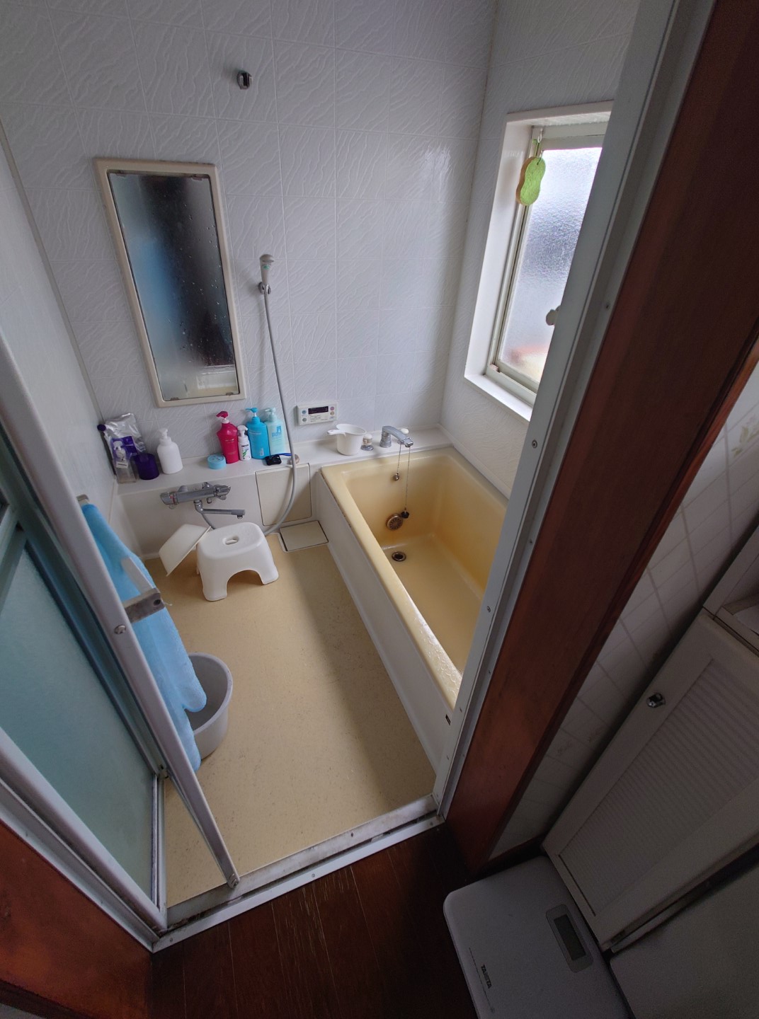 現地を確認すると、一番の問題点は脱衣所が1畳と狭く、洗濯機を置くと着替えるスペースでいっぱい。
