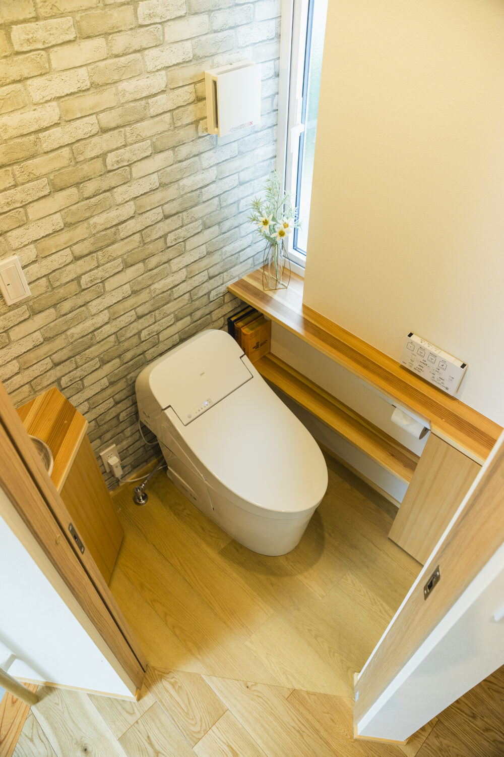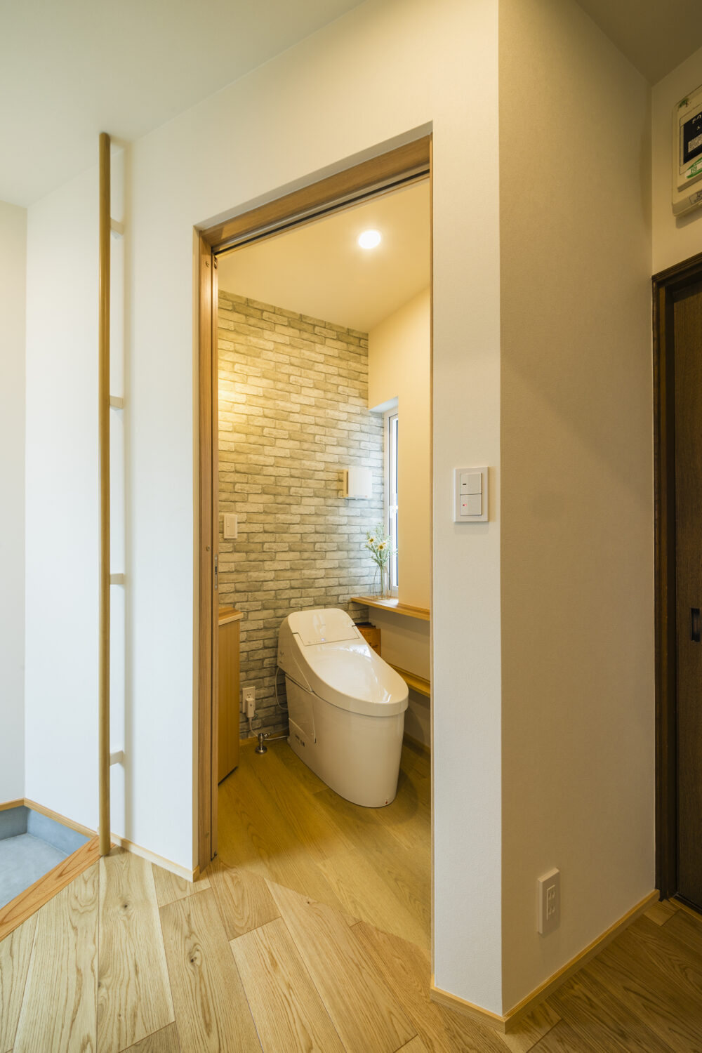 廊下を斜めにすることで洗面脱衣室とトイレも斜めに造りました。
