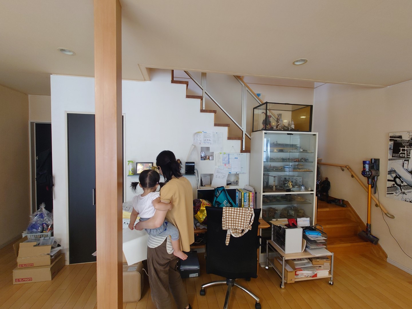 リビングの一角にあるスペースですが壁に向けて机が置かれているだけだとなかなか片付きません。
