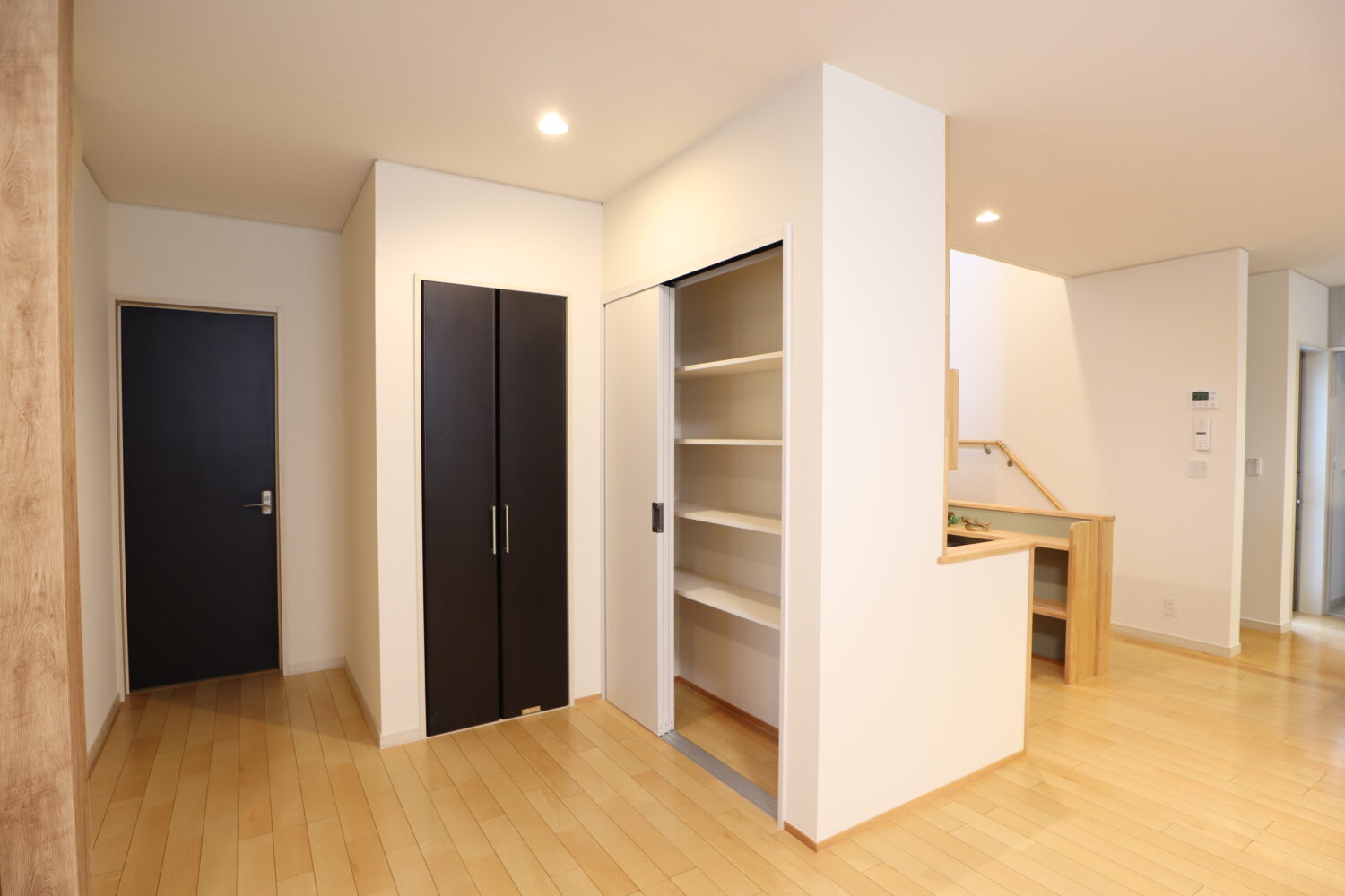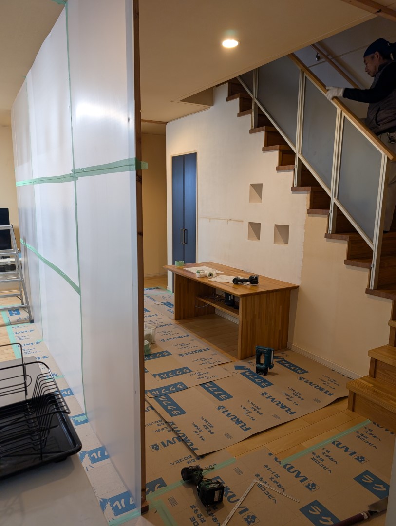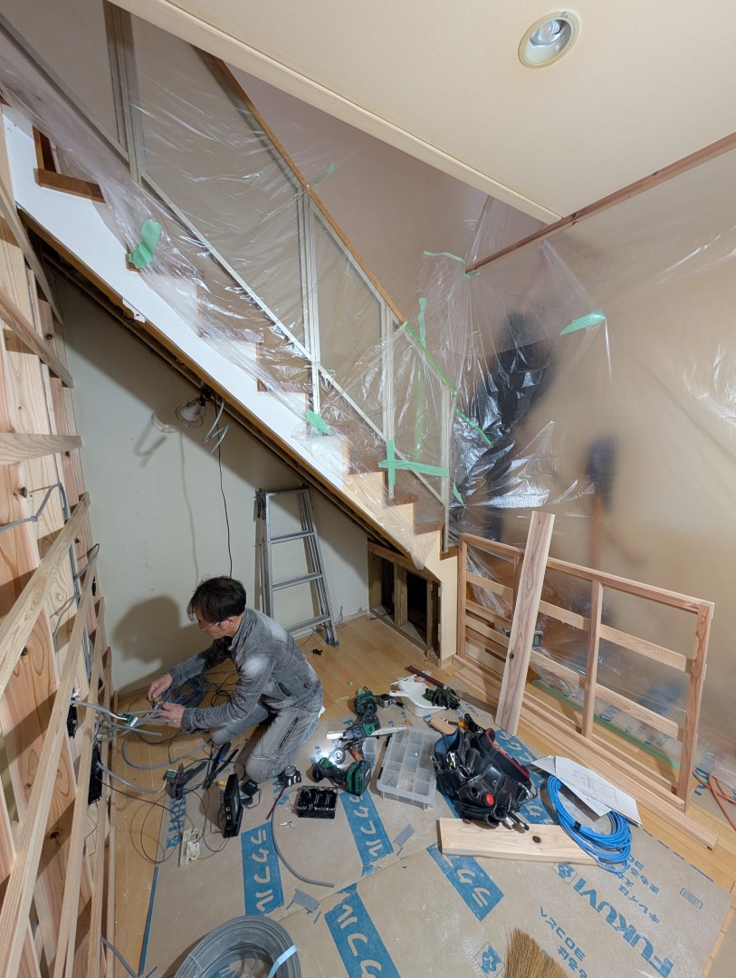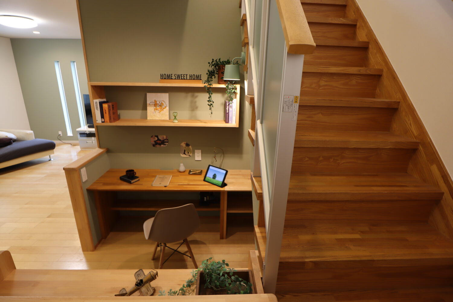そこで階段下も利用して、ブースっぽく囲われた空間を作りました。デスクの壁の反対側には収納も増設しました。